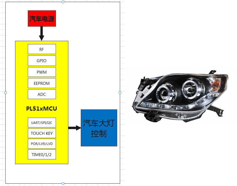 隨著生活條件提高,日常出行汽車成為不可或缺的交通工具,目前的路面上,從豪華車到熱銷車,以及國產(chǎn)車,使用耐高溫、低功耗PL51T020設(shè)計的各種類型汽車大燈及尾燈控制方案,滿足汽車燈的各類應(yīng)用。